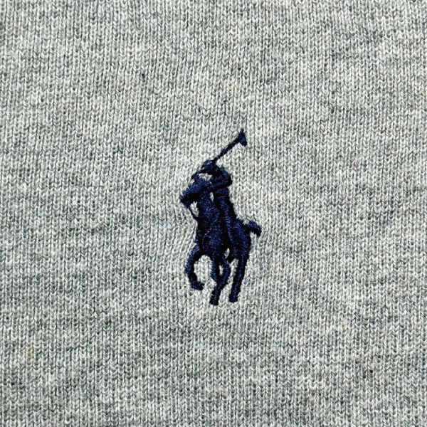 無彩色の渋めなライトグレーのボディに、上品に際立つネイビーのポニー刺繍がちょうどいいアクセントになっています!