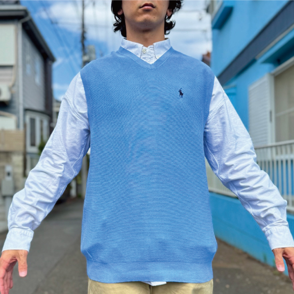 ポロゴルフのスカイブルーコットンニットベスト!