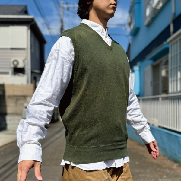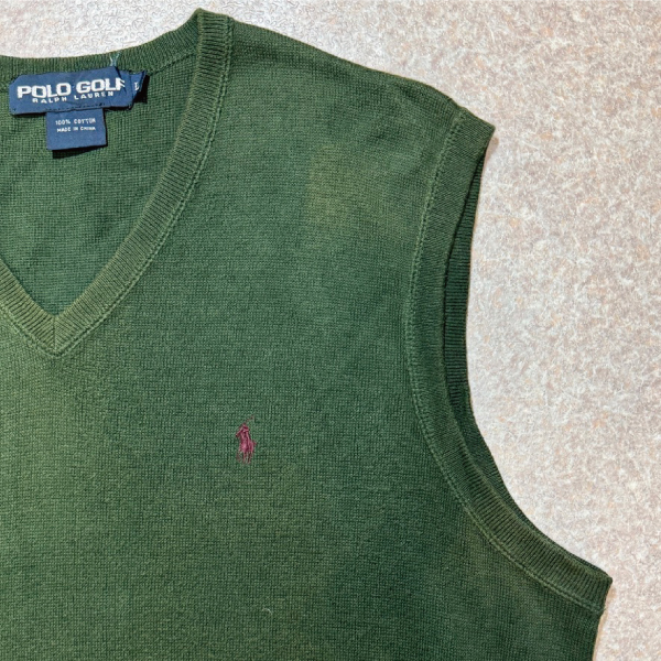 ポロゴルフのミリタリーカーキコットンニットベスト!