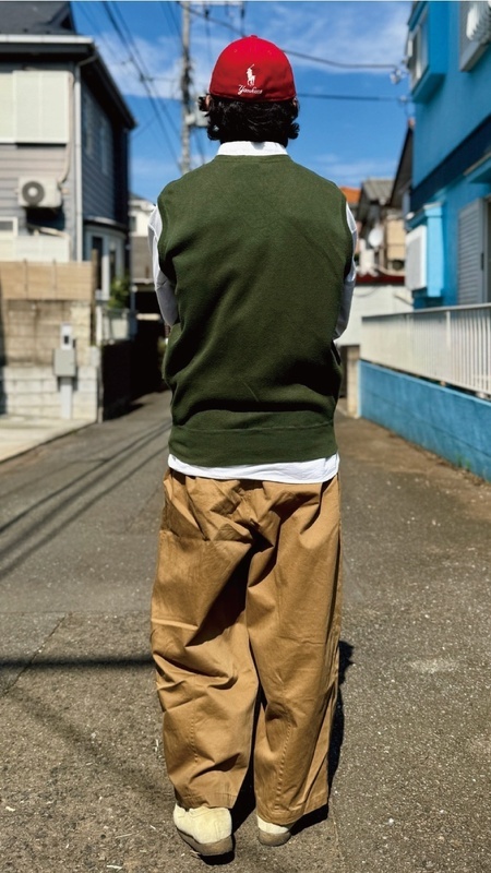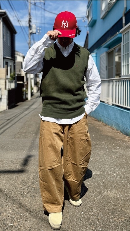 ニットベストに相性抜群な襟付きシャツはもちろん、カットソーを合わせていただいても、様になる着こなしをお楽しみいただけます!