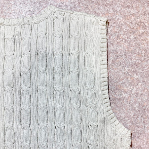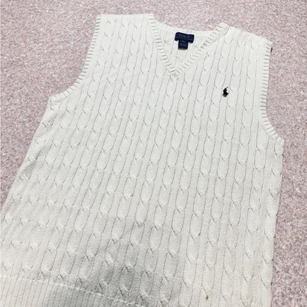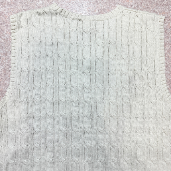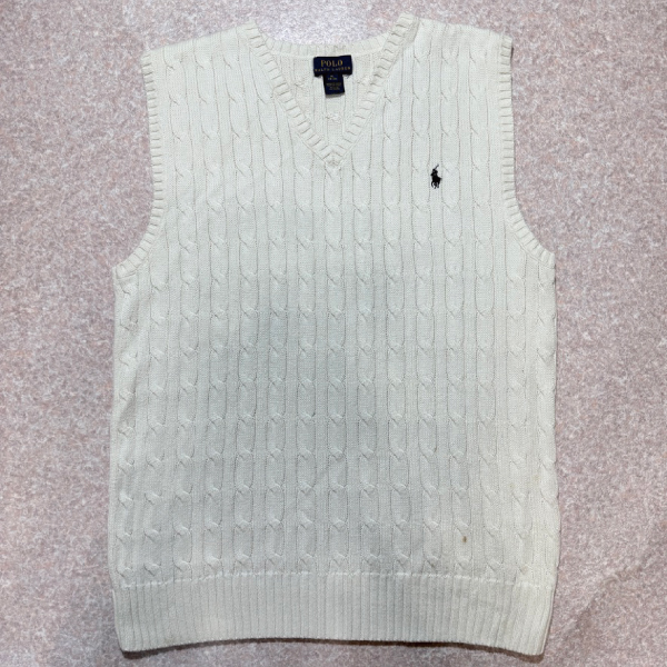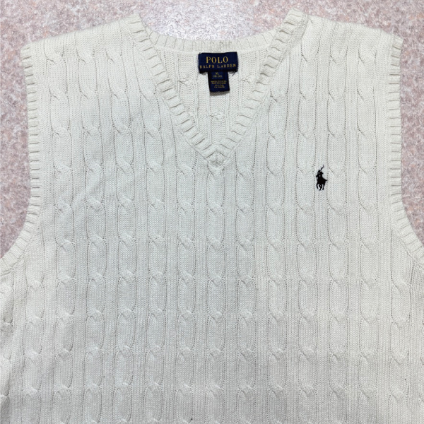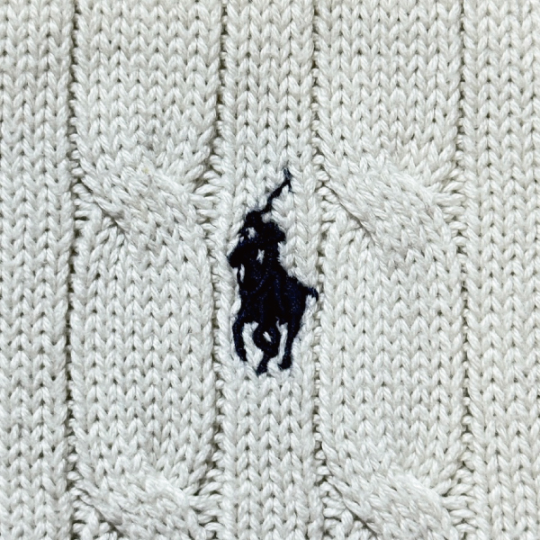 「POLO RALPH LAUREN(ポロラルフローレン)」90s 00s 10s ボーイズ XL(18/20) M〜Lサイズ相当 コットン オフホワイト ケーブル編み ポニー刺繍 ニット ベスト [2516088]