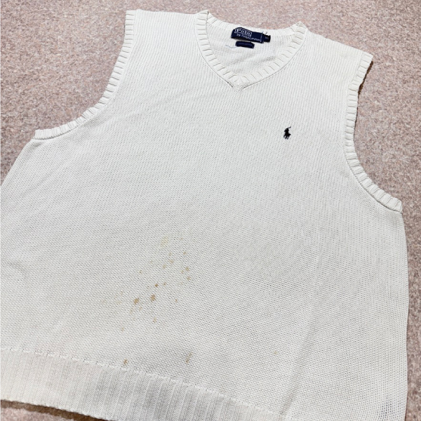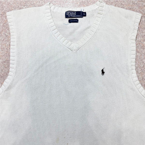 「Polo by Ralph Lauren (ポロラルフローレン)」90s 00s 10s XLサイズ コットン オフホワイト ポニー刺繍 ローゲージ ニット ベスト [2516090]