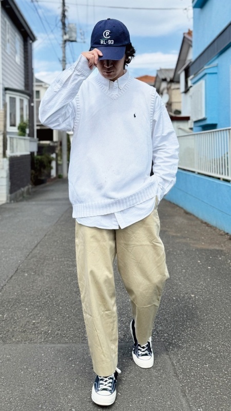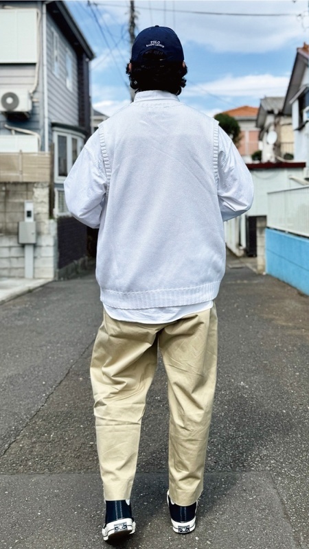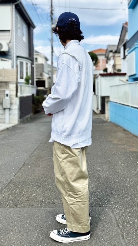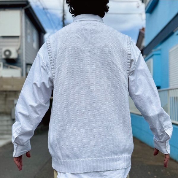 ニットベストに相性抜群な襟付きシャツはもちろん、カットソーやトレーナー、パーカーなどを合わせていただいても、様になる着こなしをお楽しみいただけます!