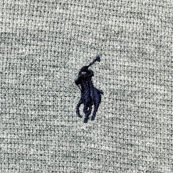 無彩色の渋めなライトグレーのボディに、上品に際立つネイビーのポニー刺繍がちょうどいいアクセントになっています!