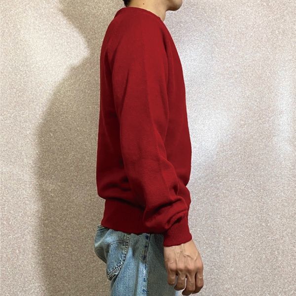 「L.L.Bean(エルエルビーン)」スコットランド製 レッド ラグランスリーブ ハイゲージ ラムズ ニット [2011054]
