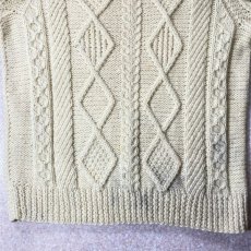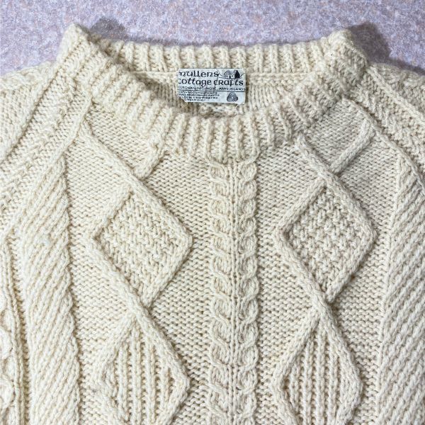 「mullens cottage crafts(ミューレンズ コテージ クラフツ)」オフホワイト ローゲージ ケーブル アラン ハンドニット [2011060]